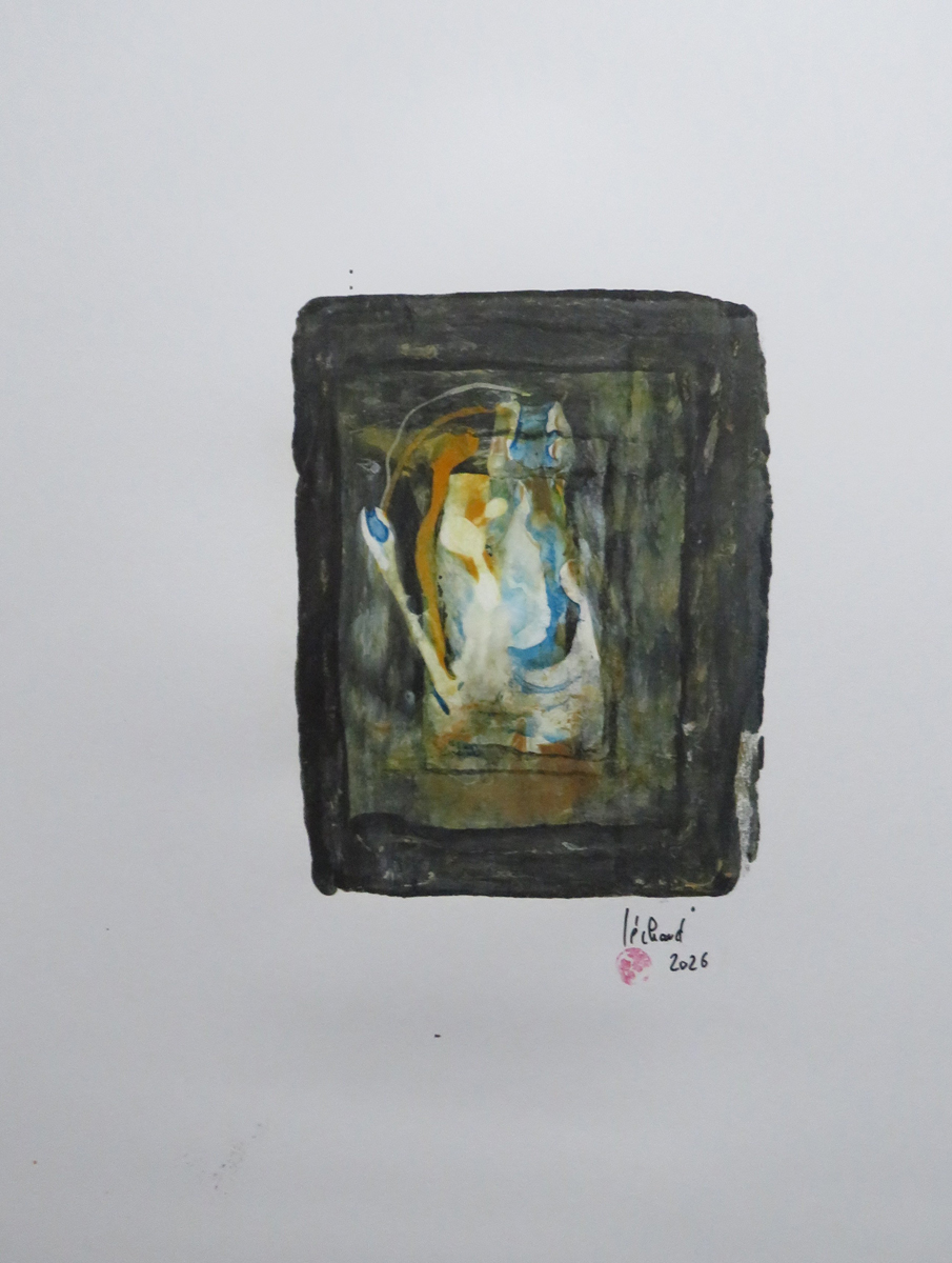 Olivier Séchaud peint essentiellement à l’huile, en utilisant le plus souvent possible des pigments naturels prélevés localement, qu’il broie et prépare lui-même.